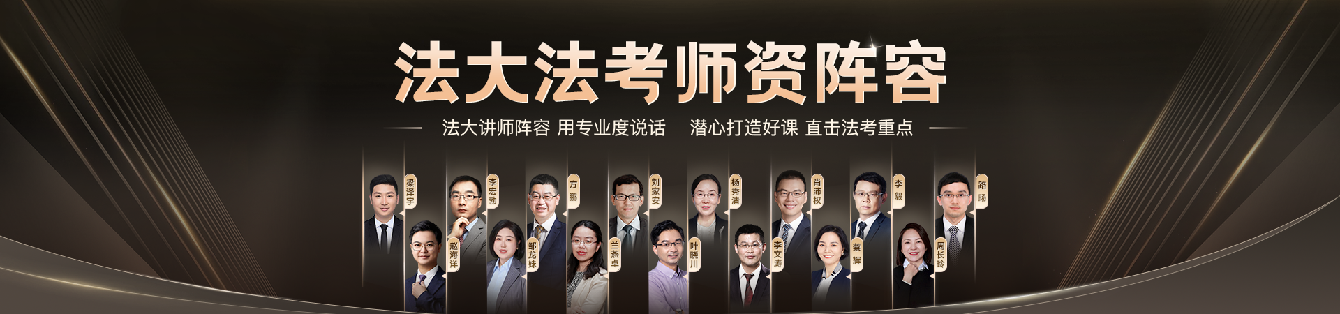 深耕法律教育多年,法大法考始终秉持“高标准育人、专业化教学”理念,汇聚国内优秀法学教育力量,形成了一支精英教学团队。