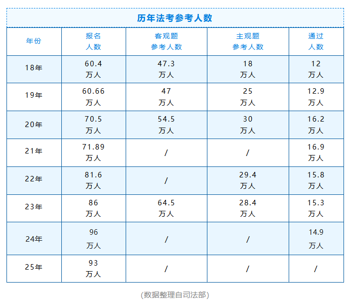 ①法考报名人数常年处于高位。